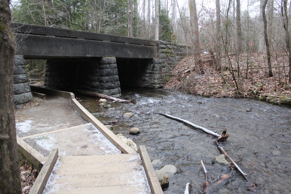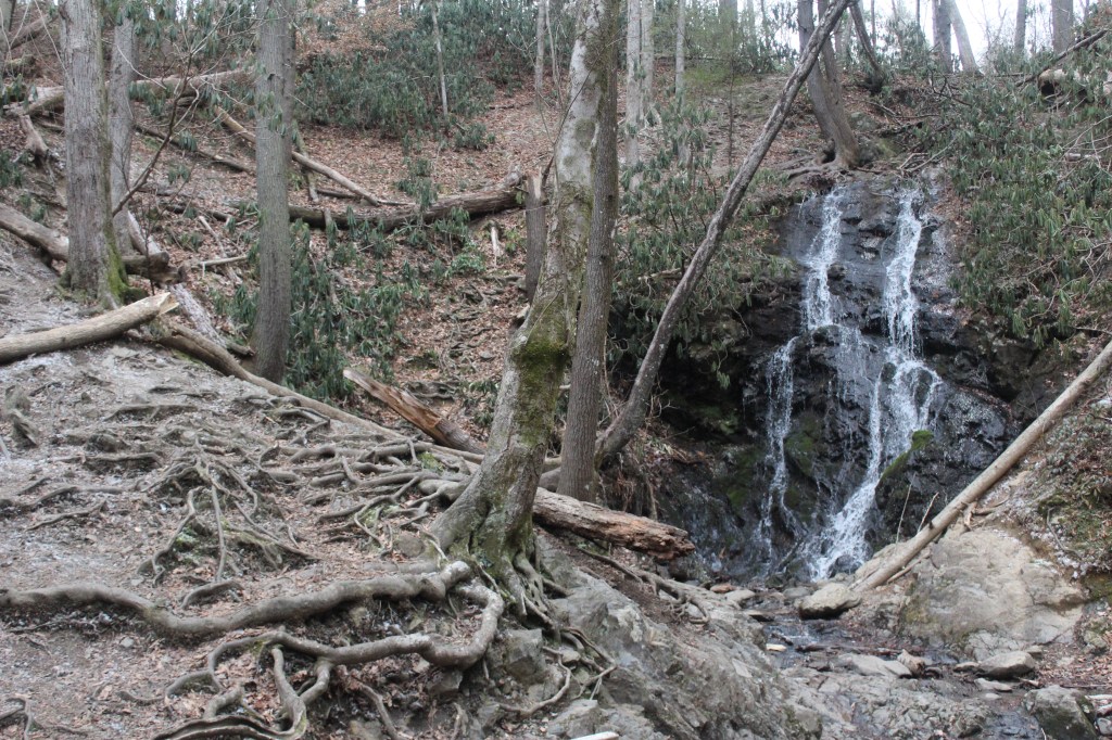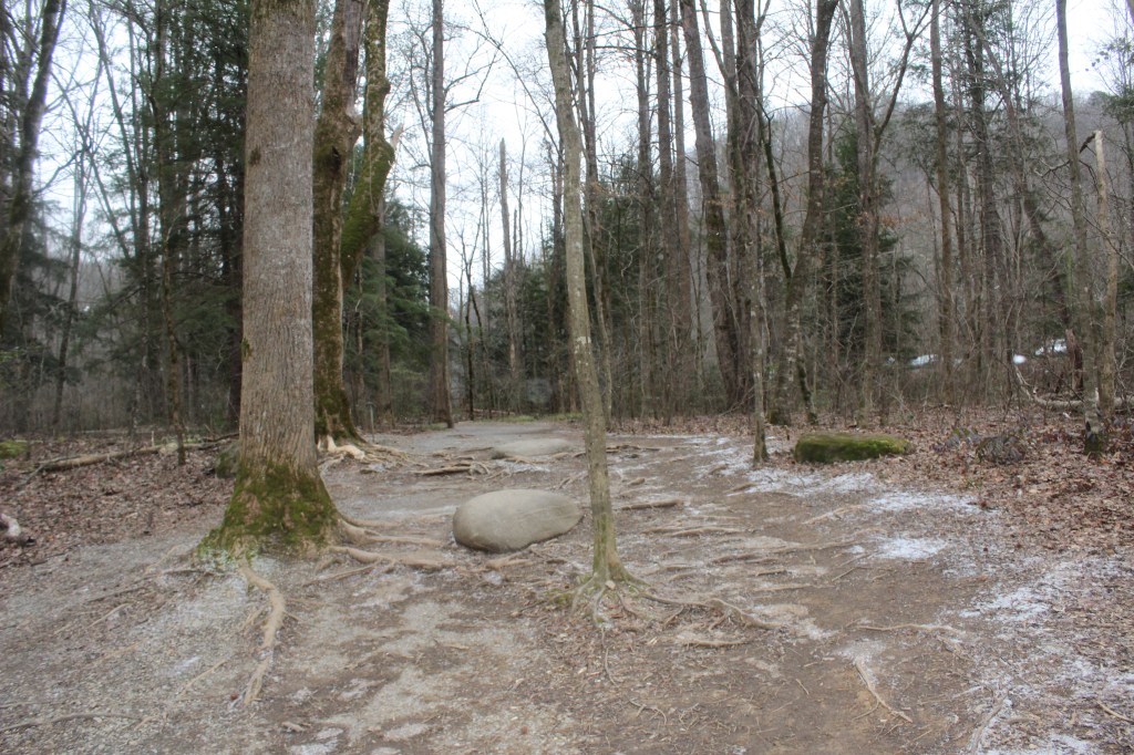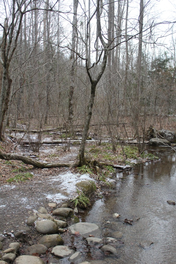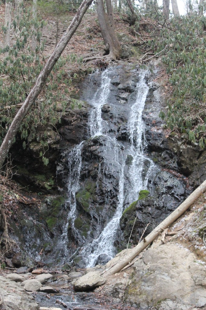 A few people were braving the cold weather that day as well, but we had the waterfall to ourselves for a few minutes. You could hear the water falling down the rocks. It had a good flow that day due to some recent rain that the Smokies had received. I could have stayed at the waterfall longer, but my fingers were starting to go numb from the cold.