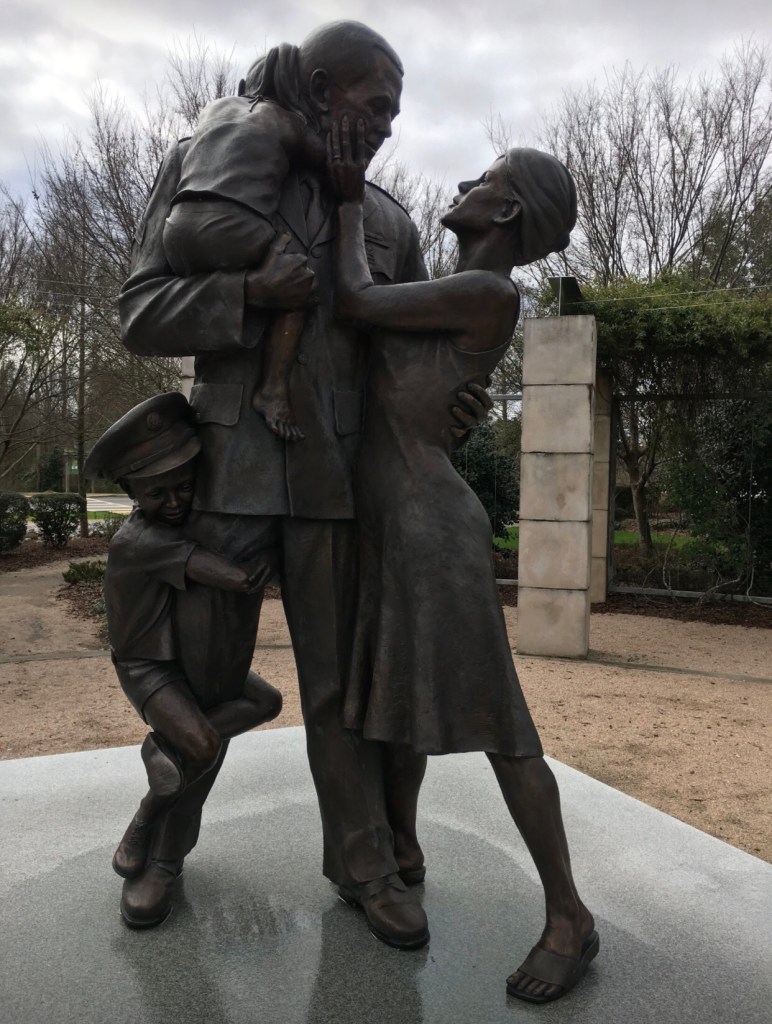 One of my favorite sculptures that I found was of the family being reunited. We all know that a family being reunited after a “tour of duty” is a very special time for all involved. Missing your loved ones is hard on anybody, but it has to be harder when you know there is a chance that you may never get to see or hold them again. It really puts life in perspective if you think about it.