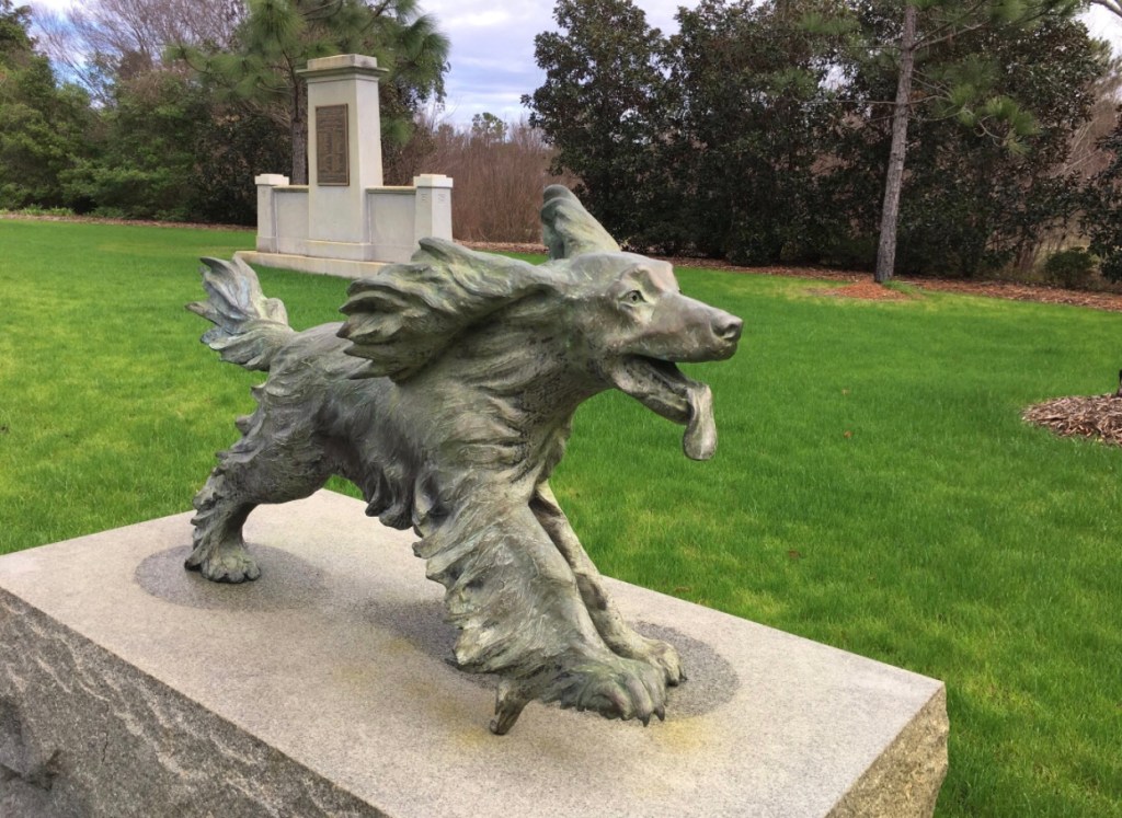 A little back ground about the dog (Boykin Spaniel, SC State Dog), named Lady. The original monument, while still in clay and not yet cast in bronze, had the dog jumping on the leg of the Soldier returning to his family. When the sculptor, Alex Palkovich, showed some of his friends his effort, a common response was something like, “what a cute dog.” He felt the dog detracted from the reunion of the family, so it was removed before being cast. A few years later, Alex decided to recast the dog in the running position coming to greet the family. It works!!! Thanks for your interest.