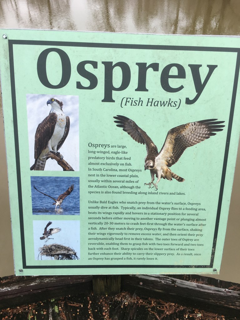 In 1989, Old Santee Canal Park opened. They have four miles of boardwalks, an excellent interpretive center, and a historic house on the property. You have excellent views of the Cooper River from one of the bridges that is built for you to walk over. It is home to alligators, turtles, ospreys, great blue herons, and numerous other types of wildlife. You can rent a canoe and take a ride through the water. The Berkeley County Museum is also located on the property, even though they were not open on this visit, and it is included with the price of admission.