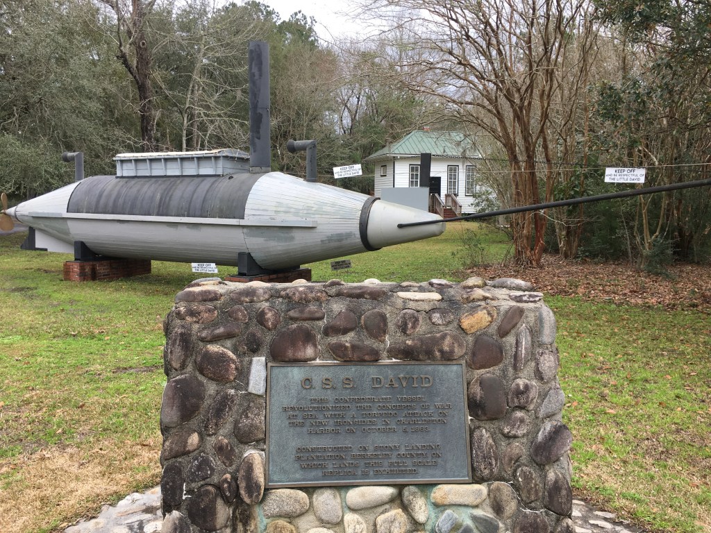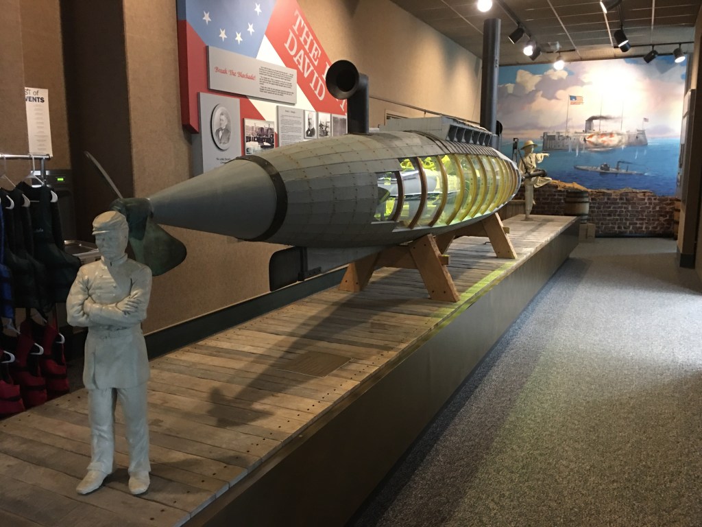 A replica of the “Little David” is out front of the museum. The original was constructed in 1863 and was used during the Civil War as a semisubmersible torpedo boat for the Confederates. Apparently it was so successful that future naval vessels were inspired by this little sub. Another website says that they don’t know for certain what exactly happened to the original “Little David”, but it has been rumored to be buried underneath a street in Charleston. I’m fairly certain that if that is true, it will be uncovered one day since construction is always taking place in Charleston.