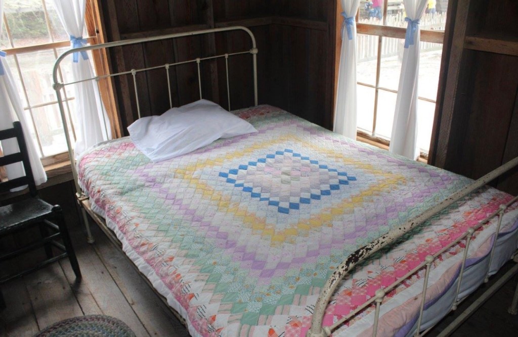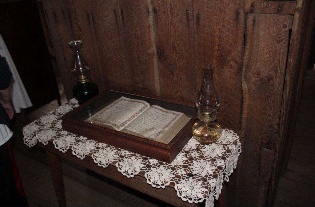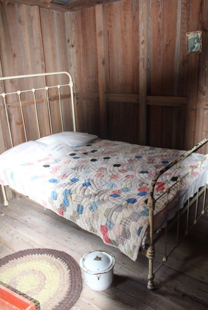 If you visit the house, you will notice that rooms have been added on. The original house had four rooms and an indoor kitchen. The family of Tom and Iva grew to include seven children, so it was necessary to add an additional two bedrooms. In 2015 the house was open for Pioneer Day, so I was able to finally go inside and see the interior of the house myself. There are several beds inside the house, books, a radio, a clock, and the kitchen can still be used today. A group of people were inside cooking up food that would have been eaten at the time the Chesser’s still lived there. Most of the food was absolutely delicious.