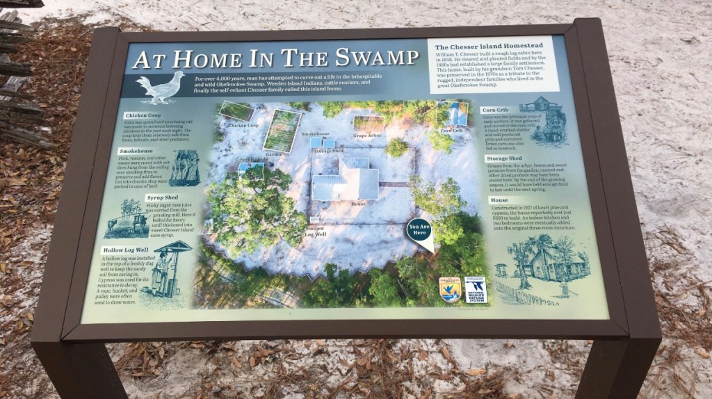 If you ever visit Okefenokee National Wildlife Refuge in Folkston, Georgia, you will have an opportunity to see how many people once lived. The Chesser Island Homestead is located on the Swamp Island Drive. While you can drive to a parking lot to get to the house, you do have to get out of your car and walk a short distance through the woods to get to the location of the house.