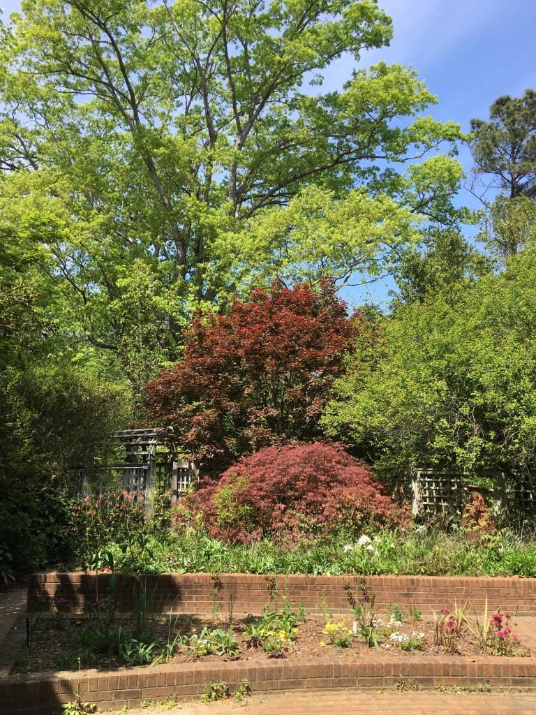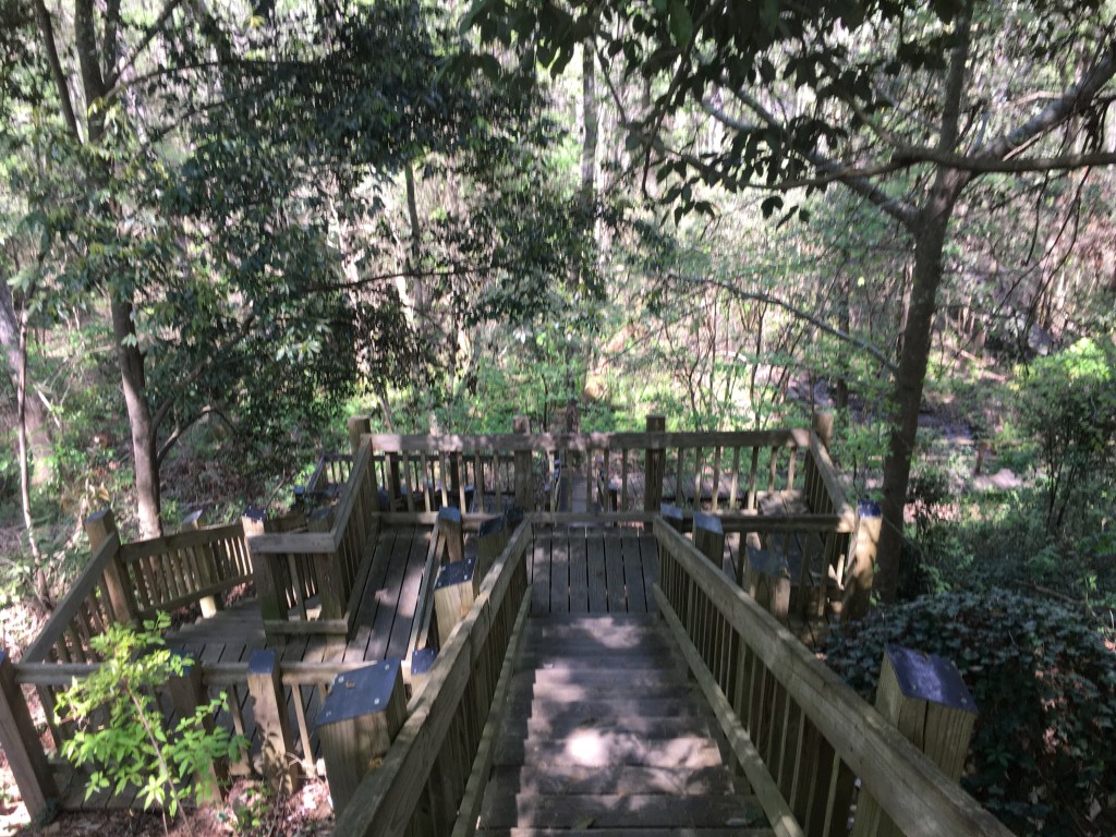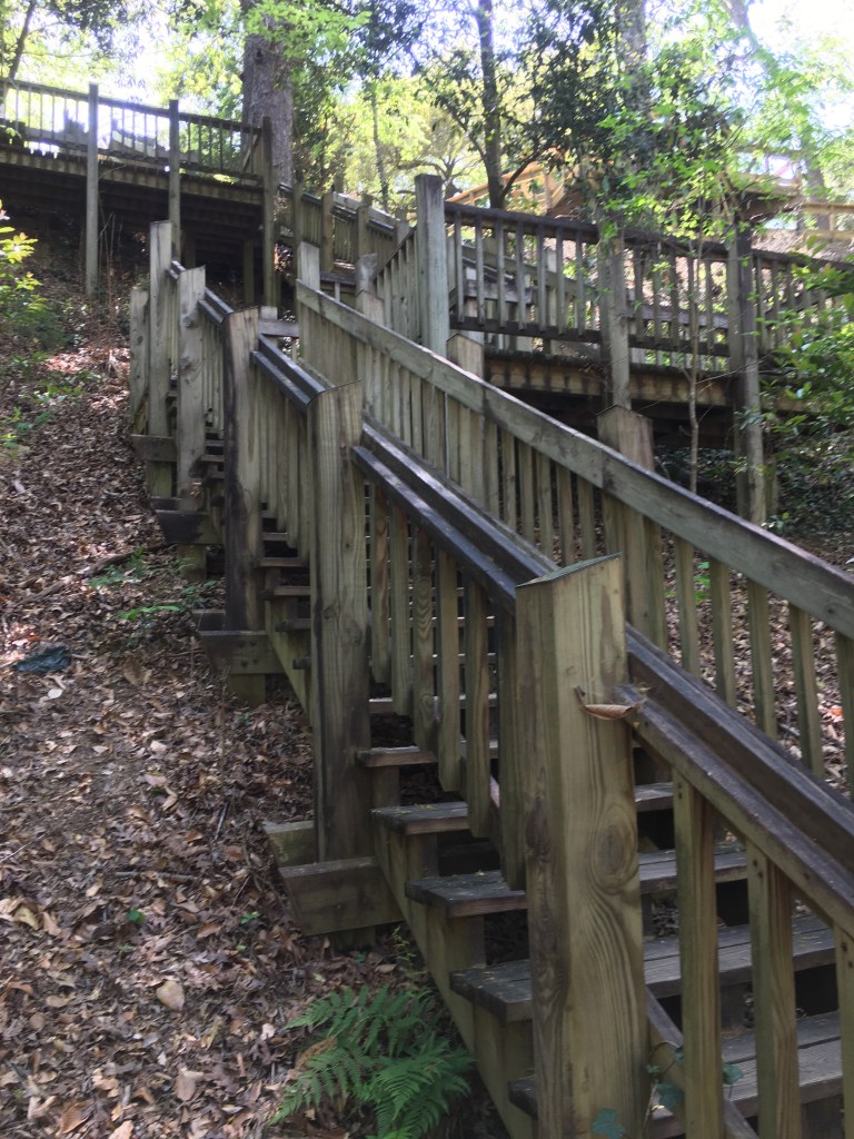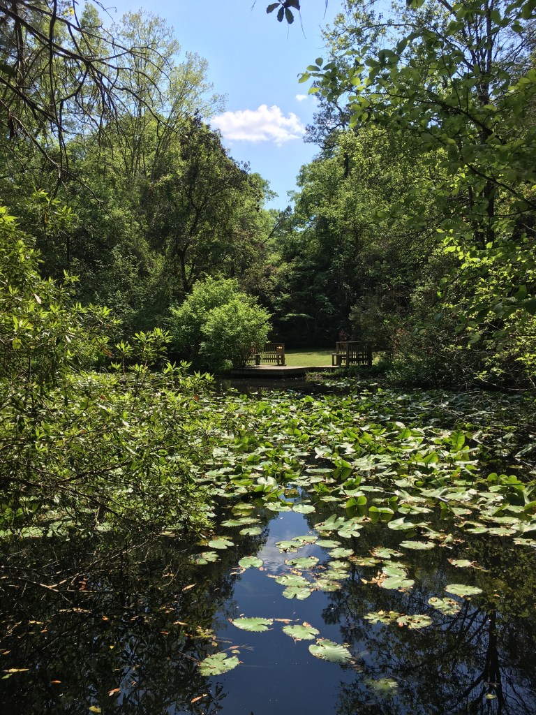 Mrs. Coker was a beloved member of the community, and she was affectionately called “Miss May” by all of the locals. She was an avid gardener, and she is the one that made what was once a dump site into the beautiful and beloved gardens that it is today. She, along with a few men and a mule, worked tirelessly to make her vision for the garden come to life. They carved out trails into the woods, planted azaleas, camellias, wisteria, and other plants to add beauty to the new trails. What is a garden without a pond? An artesian well that is down the bluff feeds the pond that was dug. The artesian well still flows freely to this day. I never knew this, but old railroad ties are what was used to cut down on the steepness of some of the trails. How cool is that?