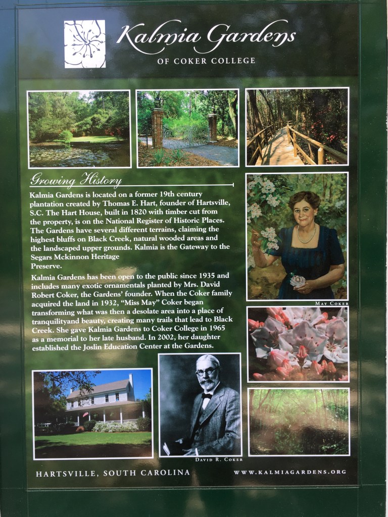 Kalmia Gardens opened to the public in 1935. In 1965 it was given to Coker College in honor of her late husband. Today it is used as a public garden and an outdoor classroom. The Hart House is still actively used, which is good because if a house isn’t lived in, it dies.