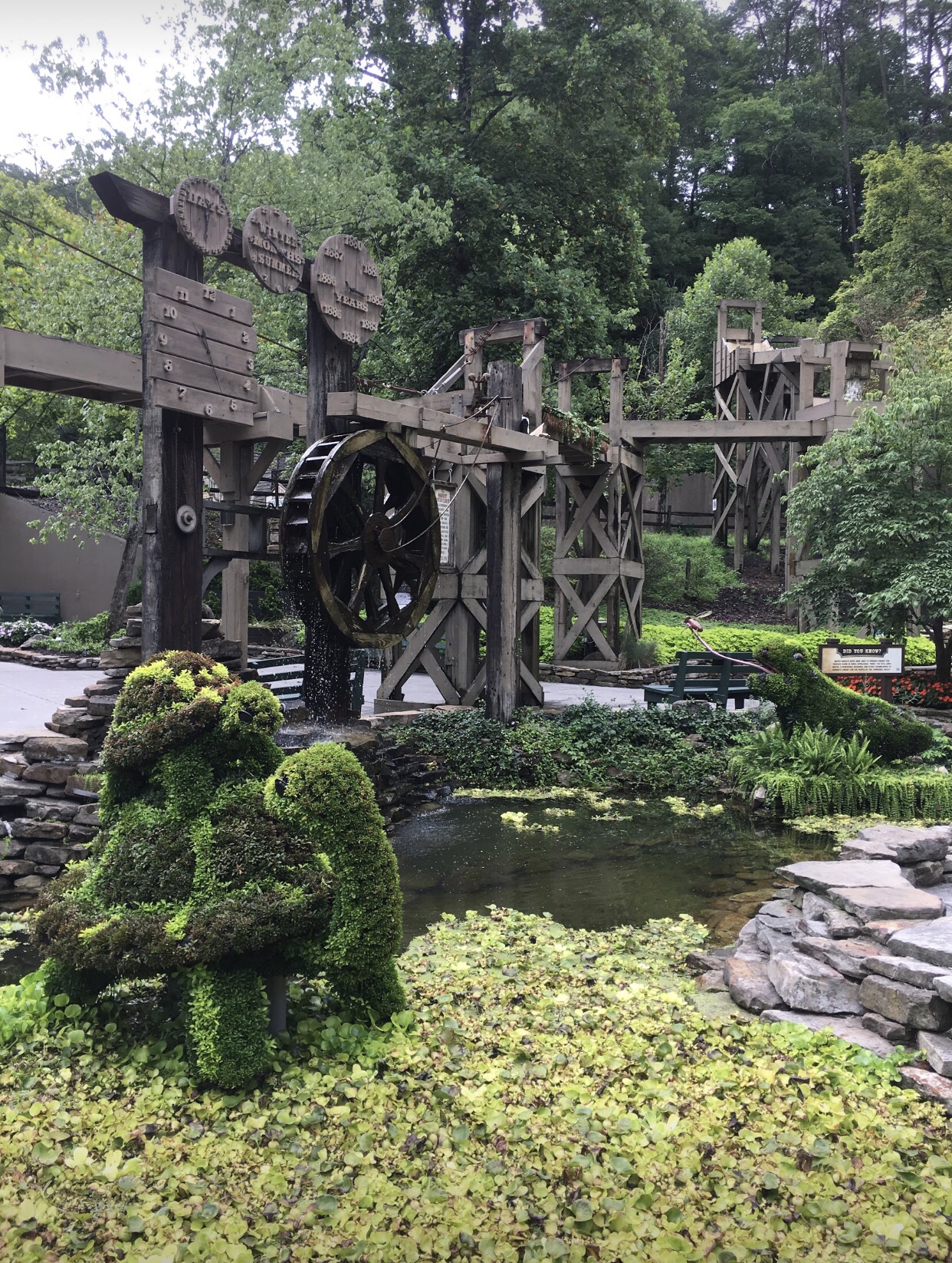Next up is some butterflies, the main “Coat of Many Colors”, a family of raccoons, a bear family, and a group of turtles and a frog. I had read that an umbrella designed with hearts on the side that represents “I Will Always Love You” was also there, but I never found it during my visit. I do have to admit that I didn’t cover the entire park on this visit, so it was possibly located in another area of the park.
