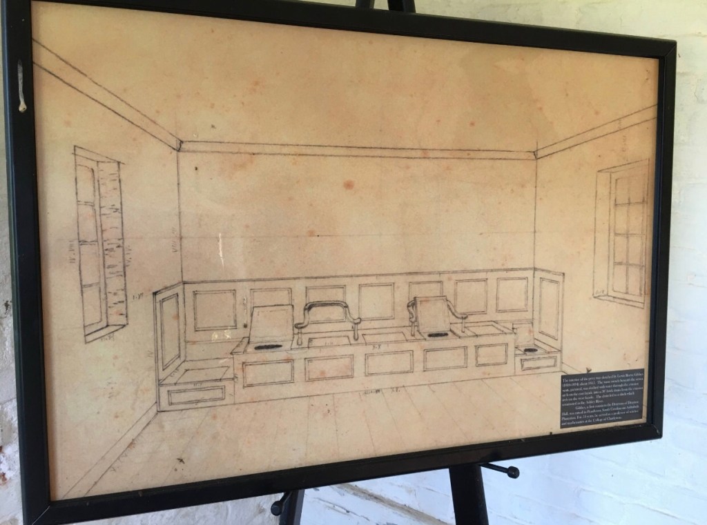 One of the most remarkable things about Drayton Hall is the fact that there is no furniture in the house. I can only imagine how it must have looked when it did have furniture inside. Surprisingly some of the rooms are quite small for a house that is so large. Fireplaces are located throughout the house, but they would have needed all of them on those cold winter days since this house was built way before central heating and air would be thought of. Windows with shutters are everywhere you turn. If you have ever experienced the south in the summer, you would appreciate all of those windows to let some air into the house. There are no bathrooms inside the house, but there are some places inside the window seats that appears as if they could have held chamber pots. A privy, fancy outhouse for those of you that don’t know, is located near the house. According to a drawing that is inside, the privy was once a seven seater. You could bring your whole family into the outhouse with you while being warmed by the fireplace that is located inside of there as well. I thank God everyday that I was born when I was.