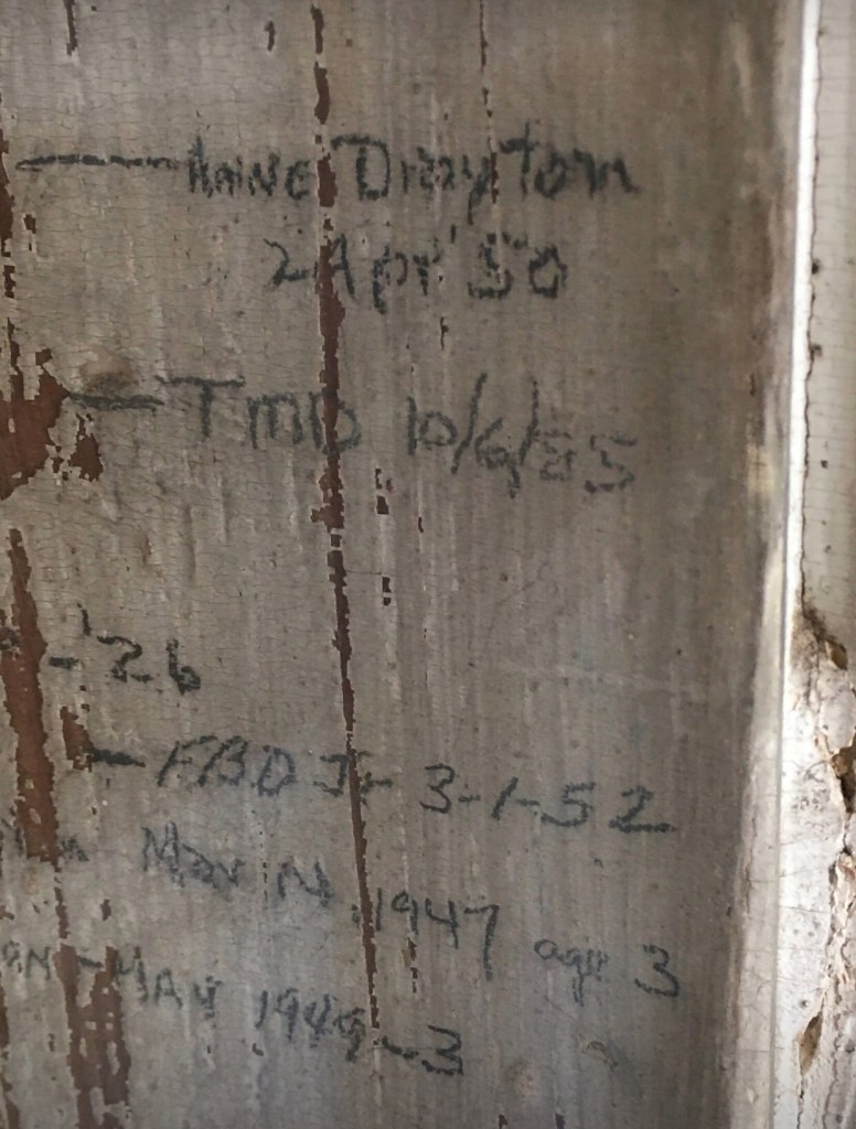One of my most favorite things about Drayton Hall is the growth chart that is located inside the house. You can see names of different Drayton family members written in pencil and the date their height was taken. Even the most famous dog that lived there, Nipper, has a space on the wall. To this day members of the family still come to the house to keep this tradition alive.