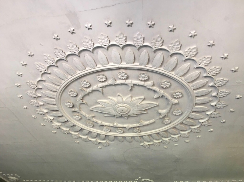 Drayton Hall is located at 3380 Ashley River Road in Charleston, South Carolina. They are currently on an abbreviated schedule and are only open Wednesday through Sunday each week. The grounds tour right now is $22 for each adult, $10 for children 7-15, and free for children under the age of 7. The house tour is currently an audio tour due to the pandemic, so you can bring your own earbuds or buy some on site. If you do go, please remember to look up. The ceilings in this house are amazing.